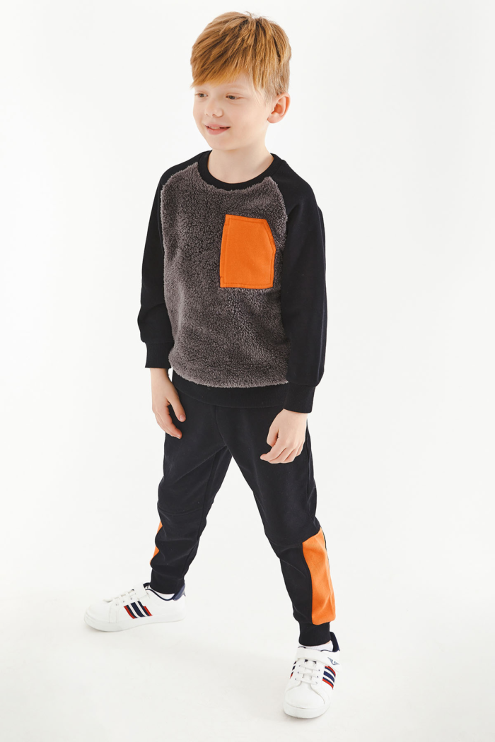 RP2840-2 تريننج دافئ للاولاد بلوز فرو مع بنطال مبطن مزيج رائع من الالوان رمادي مع اسود مع برتقالي