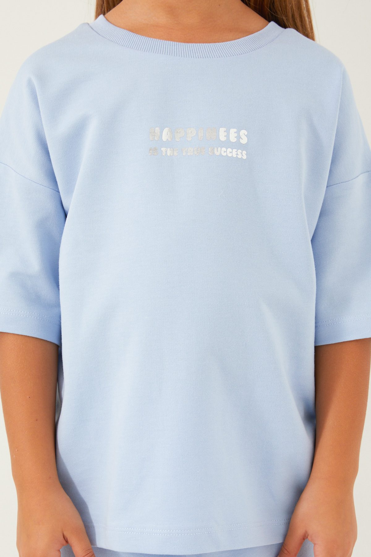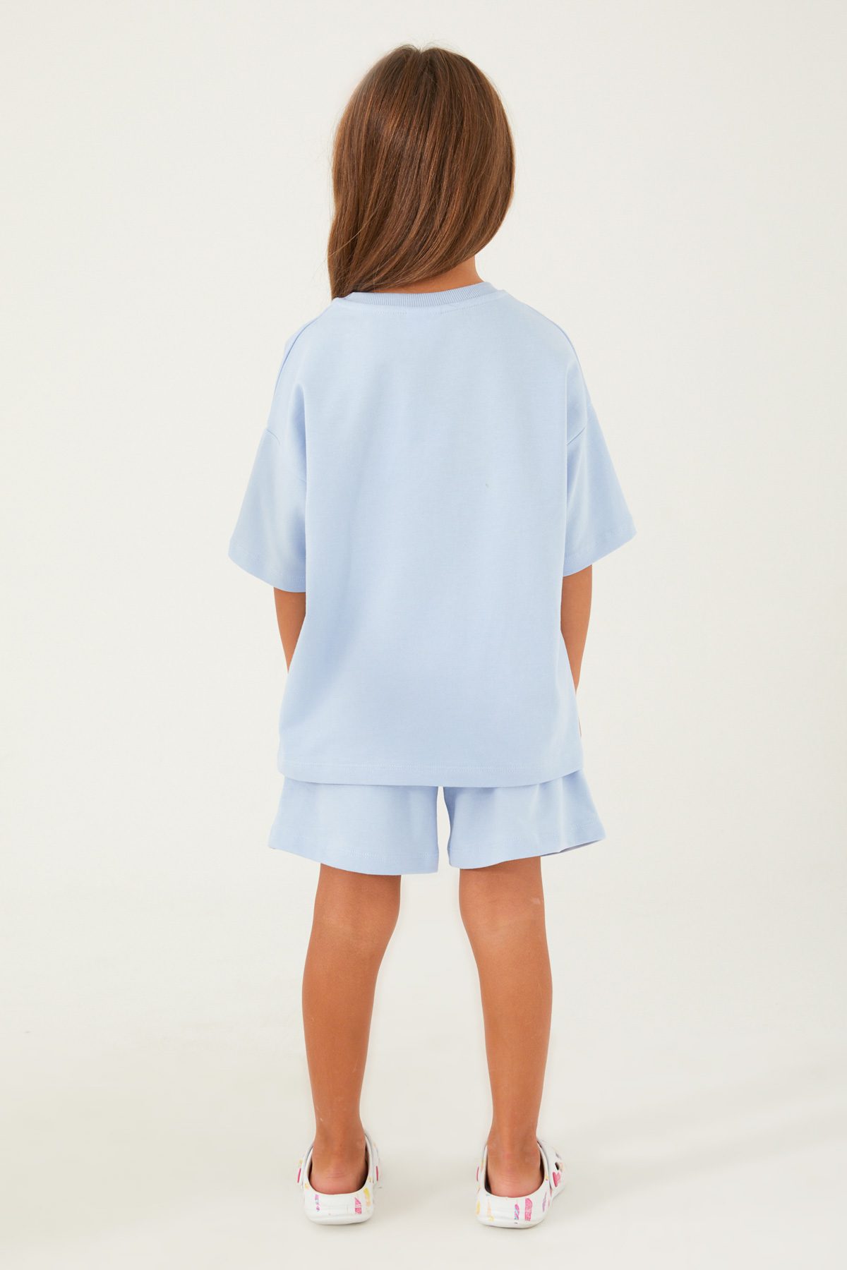RP3076-2 طقم شورت قطن قطعتين للفتيات لون ازرق فاتح
