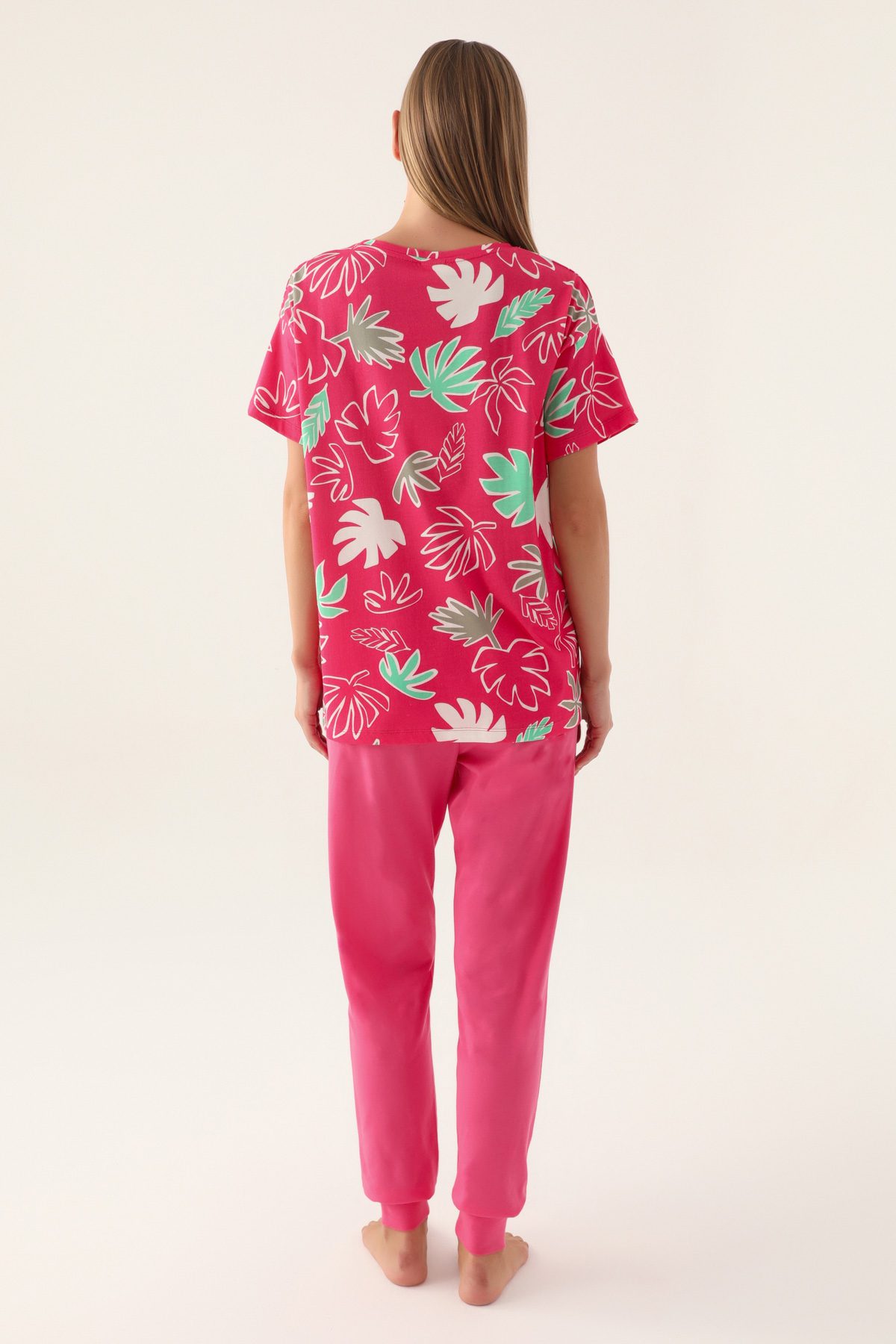 RP3386 من كولكشن الام مع ابنتها طقم بيجاما قطن قطعتين لون فوشيا