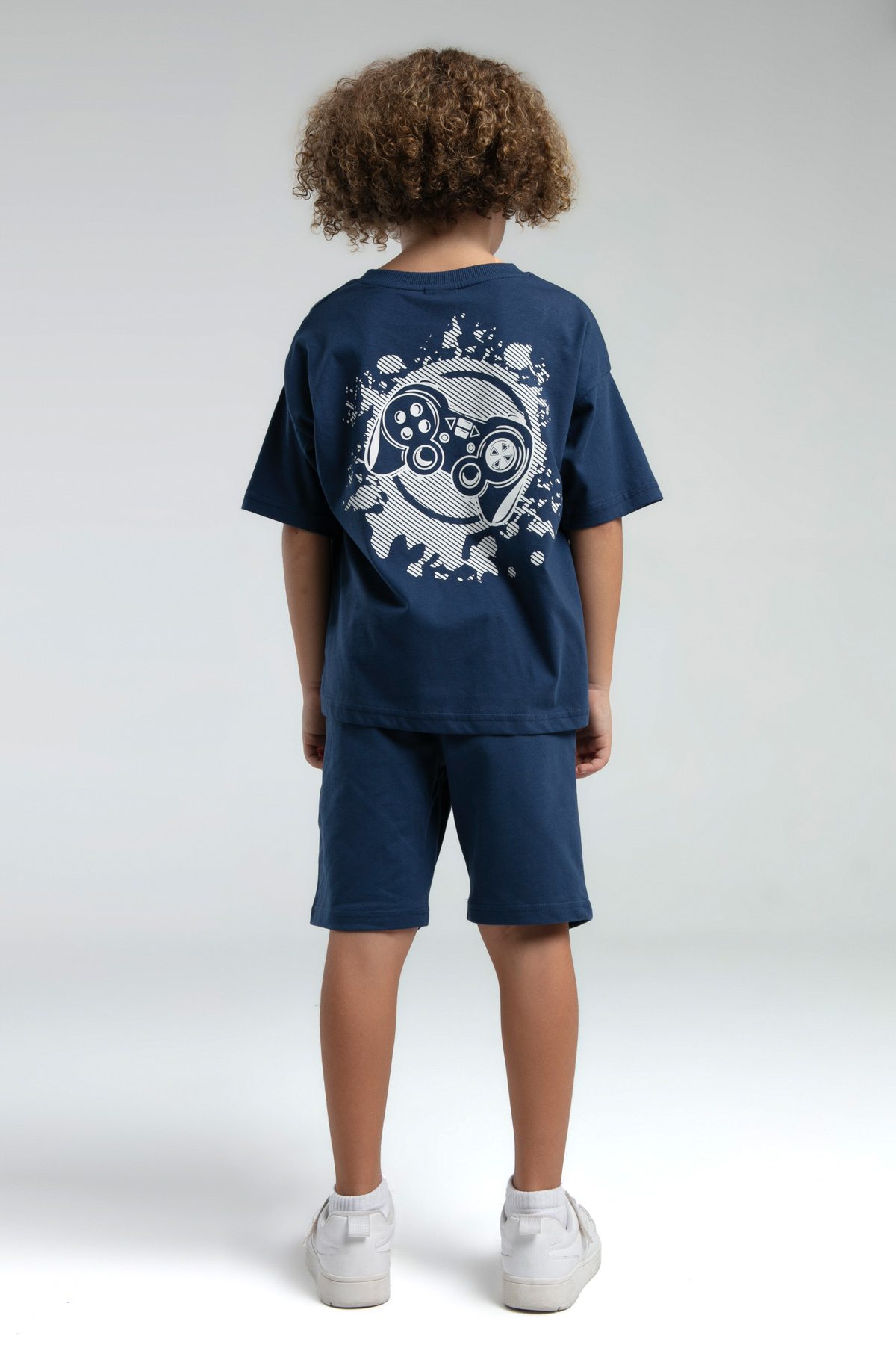 RP3572 طقم شورت للاولاد قطن قطعتين كحلي
