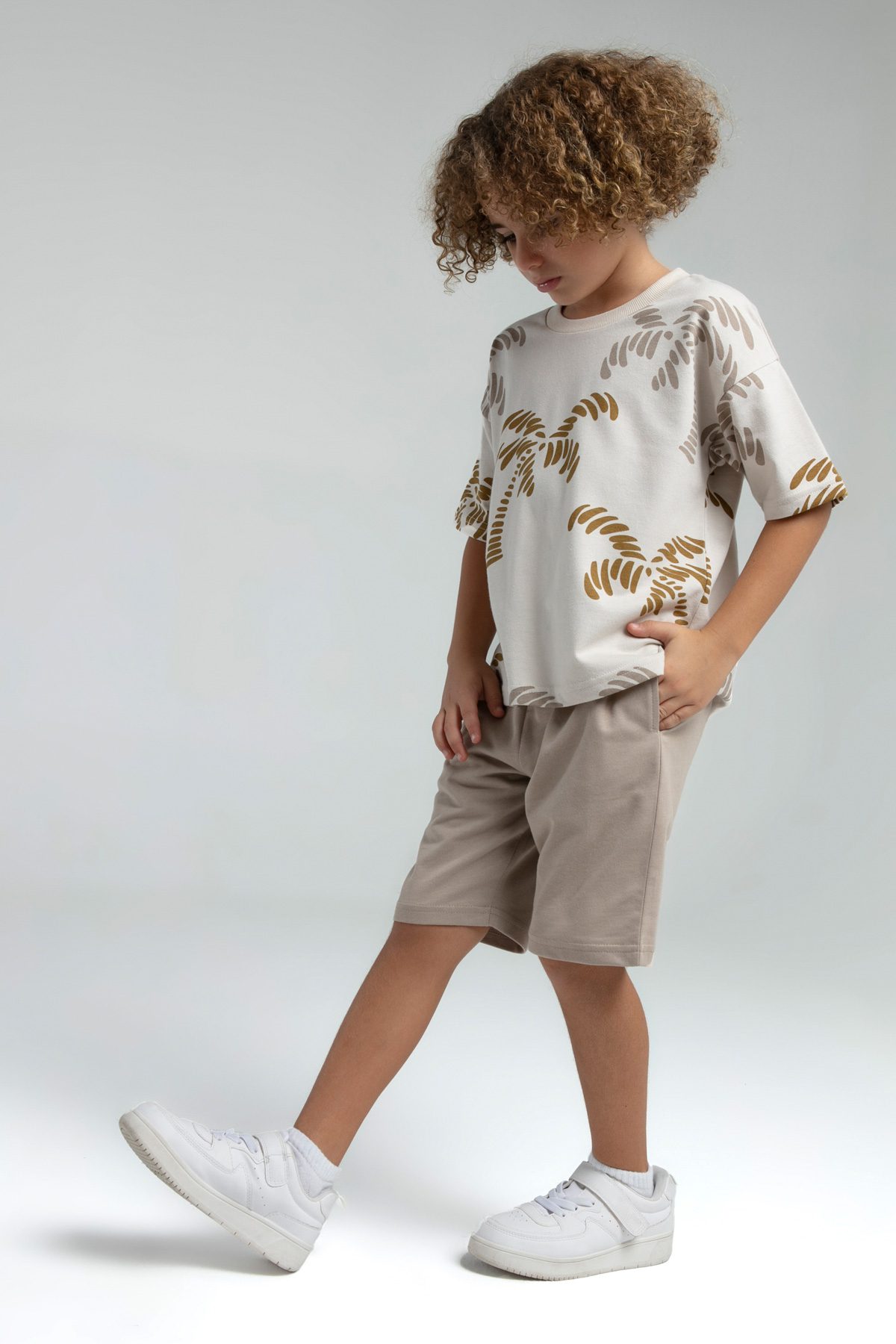 RP3573 طقم شورت للاولاد قطن قطعتين لون بيج