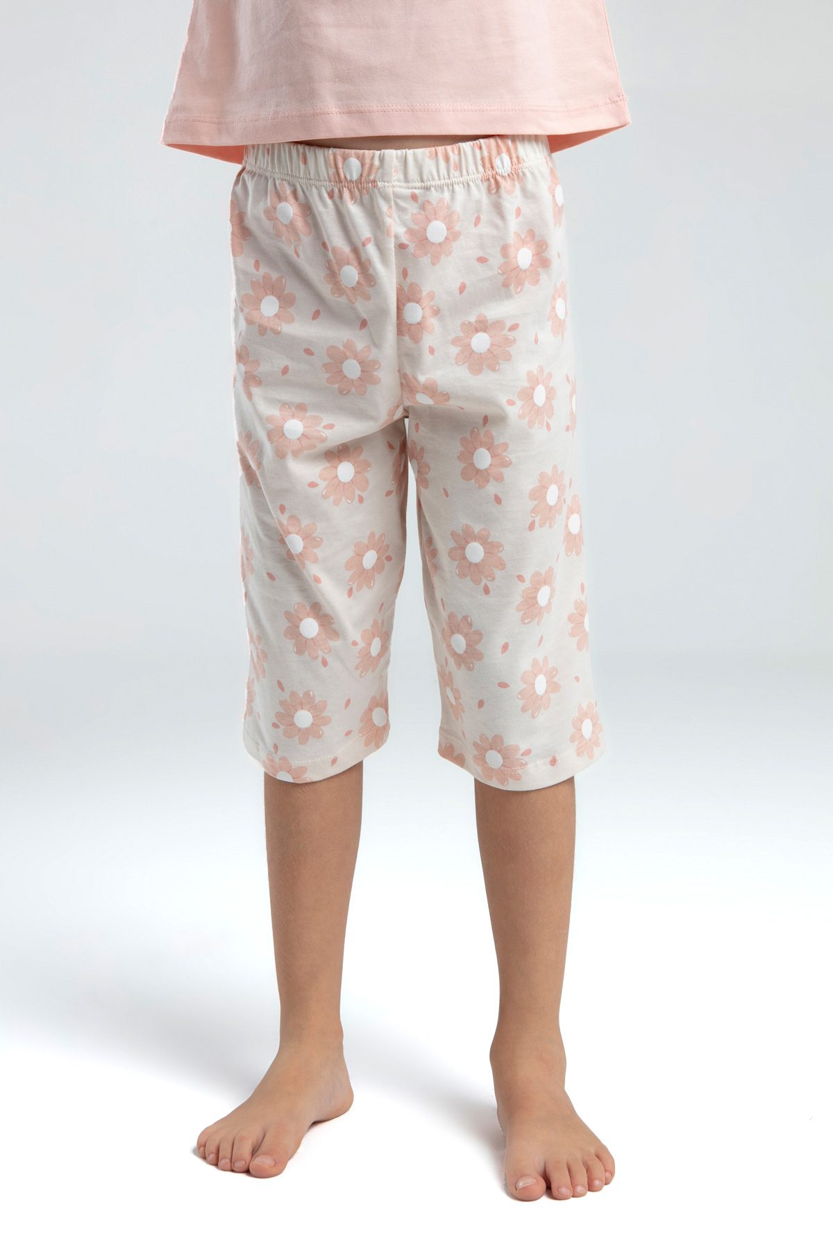 RP3608 طقم شورت قطن للبنات قطعتين لون مشمشي