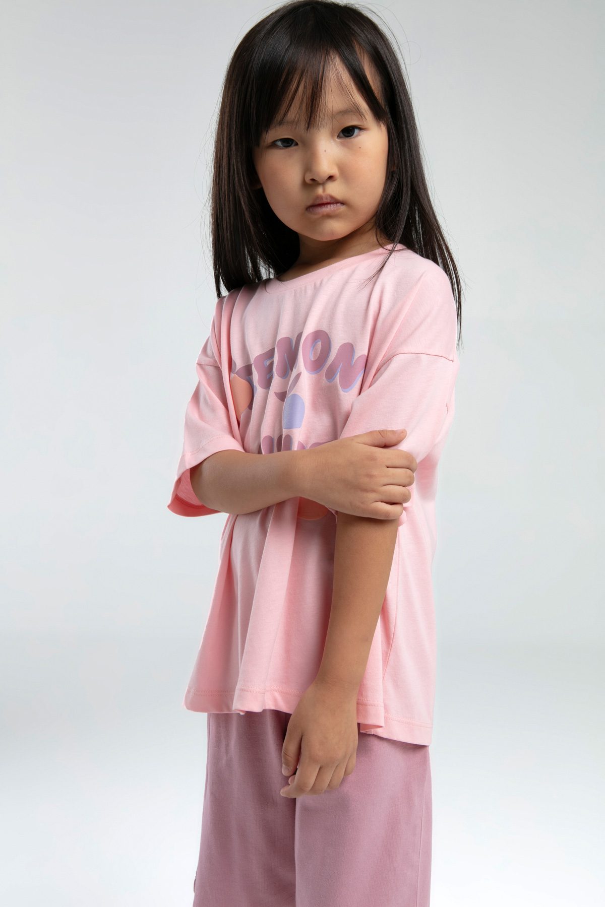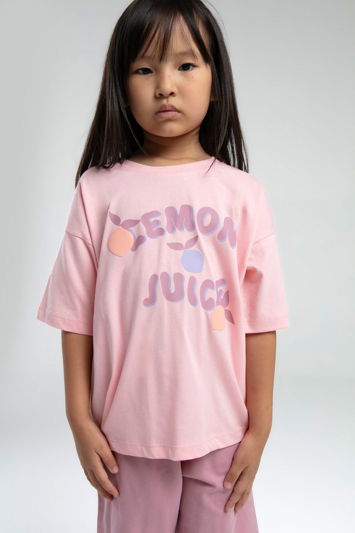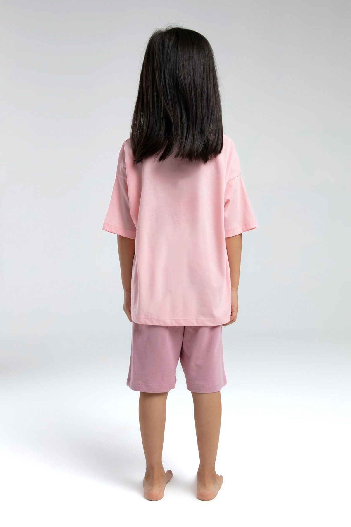 RP3620 طقم برمودا للفتيات قطن قطعتين لون زهري