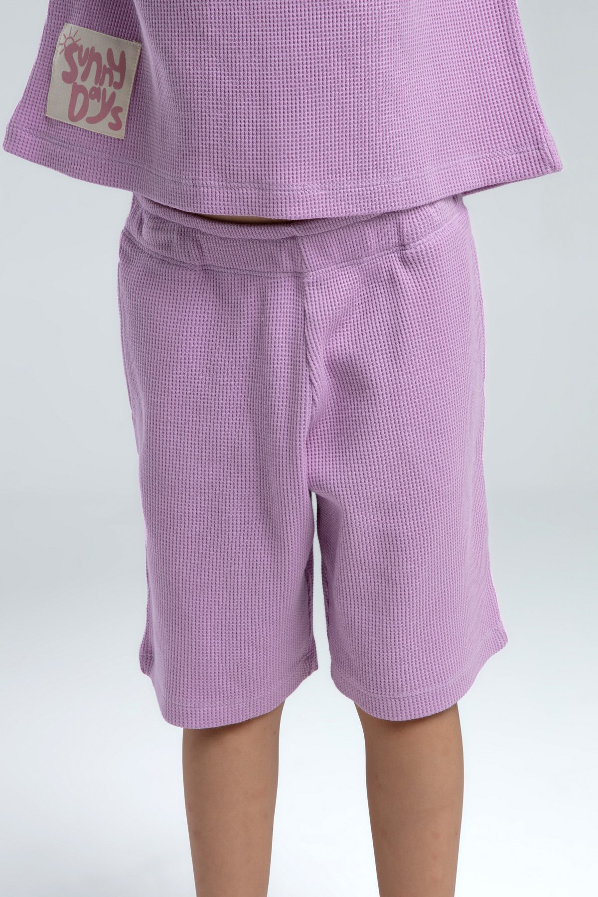 RP3590 طقم برمودا للفتيات قطن ثلاثة خيط لون فستقي