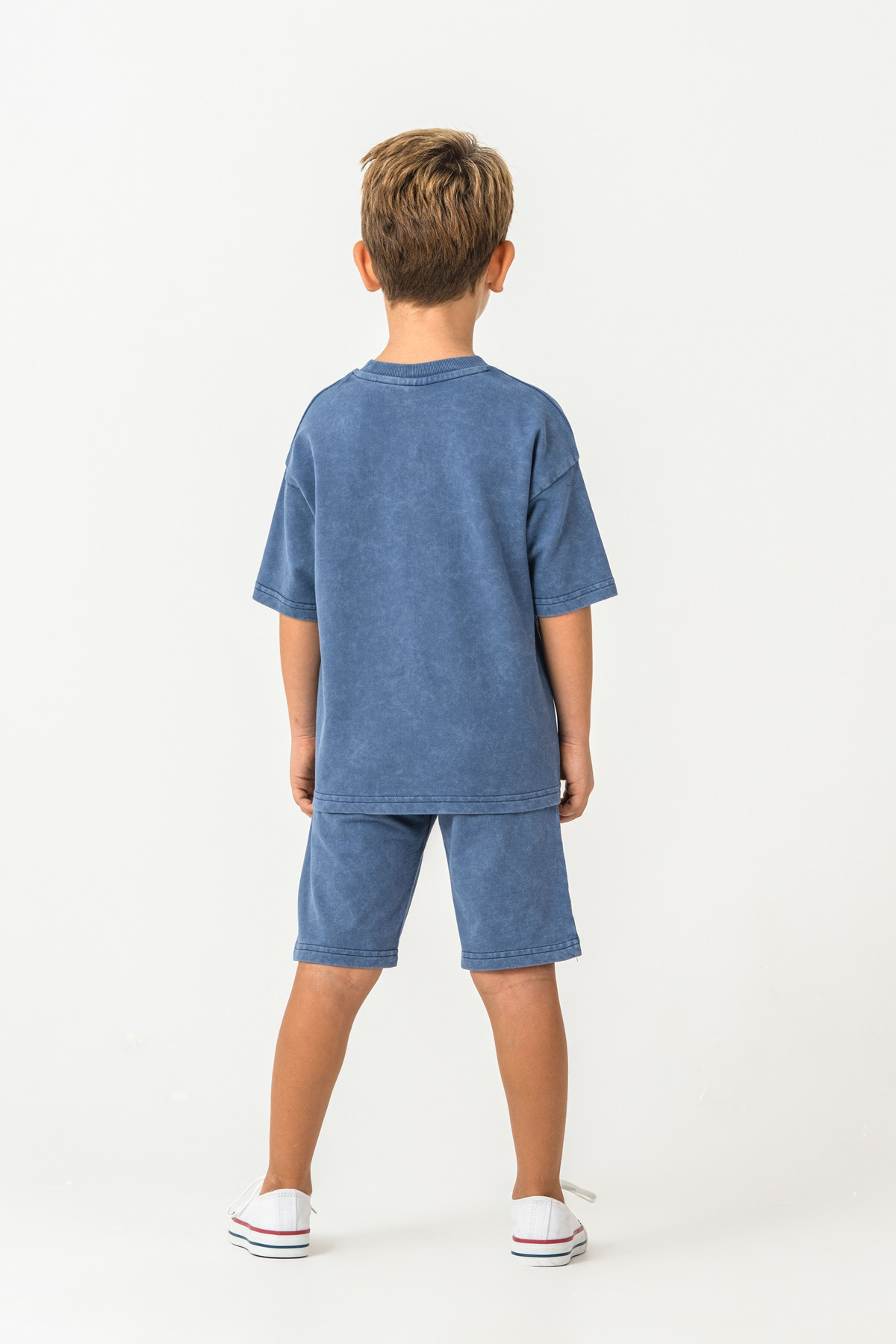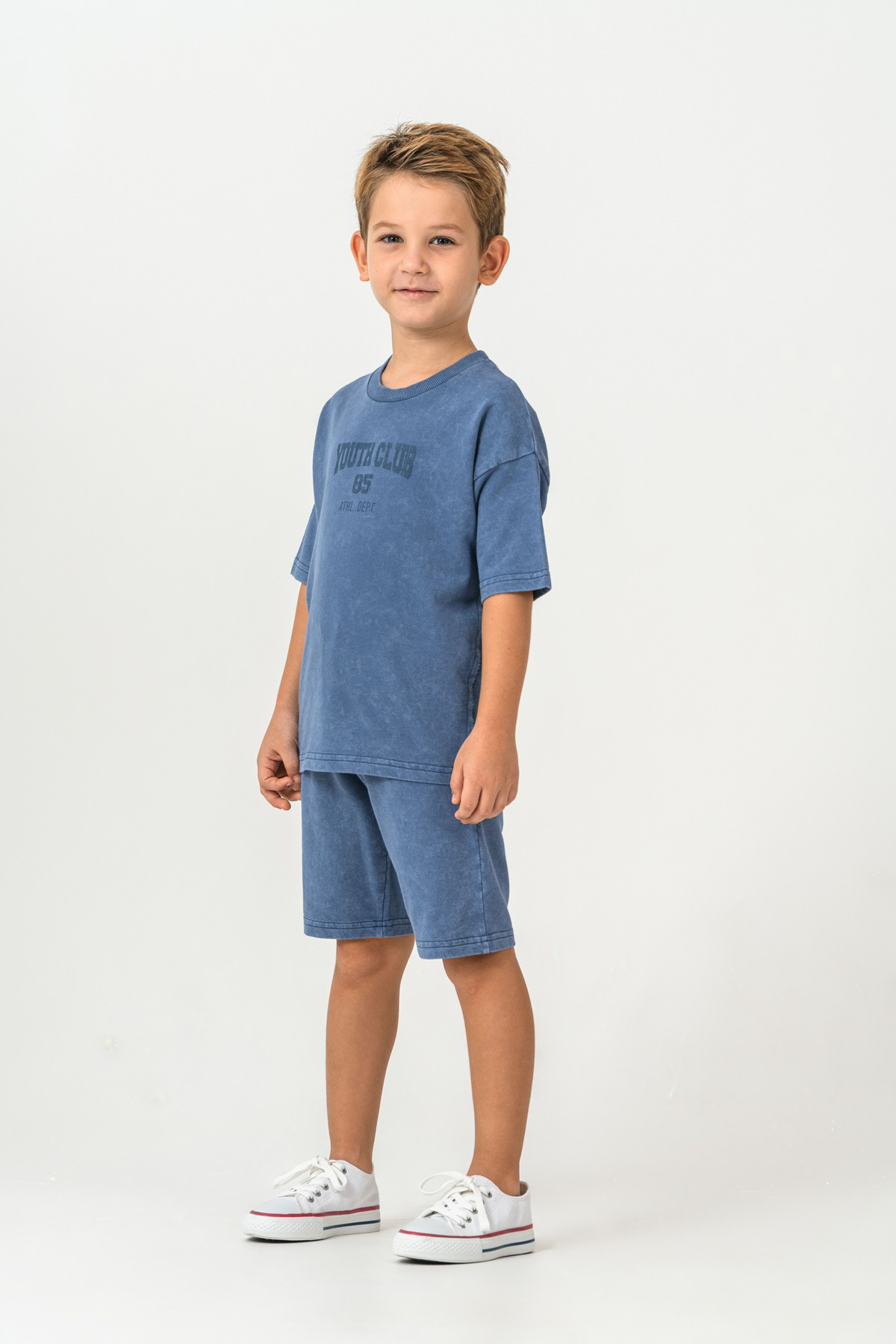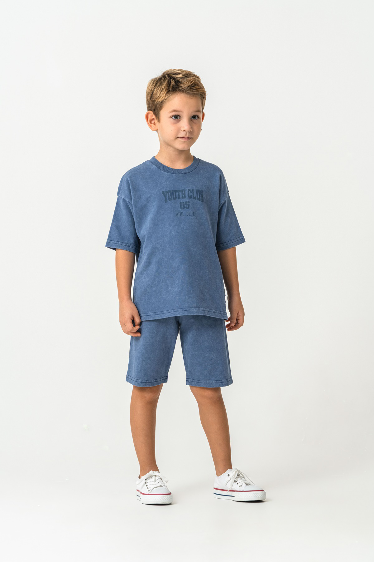 RP3728 طقم شورت للاولاد قطن قطعتين لون ازرق