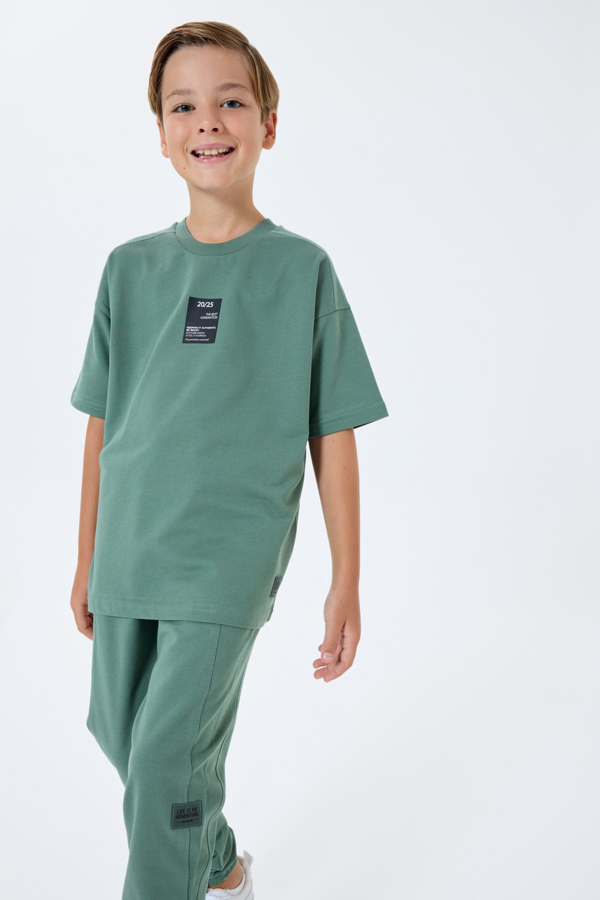 RP3768 طقم للاولاد قطن قطعتين لون اخضر طقم بتصميم انيق قصة واسعة مكون من قطعتين بنطال مع بلوز نصف كم نسيجه القطني عالي الجودة يضمن راحة طفلك قطن 100% يغسل في درجة حرارة لا تتجاوز 30 درجة مئوية لا ينصح باستخدام النشافة