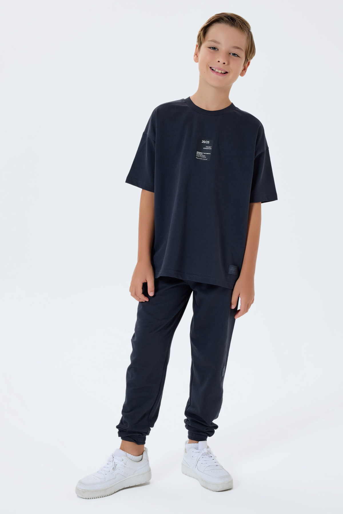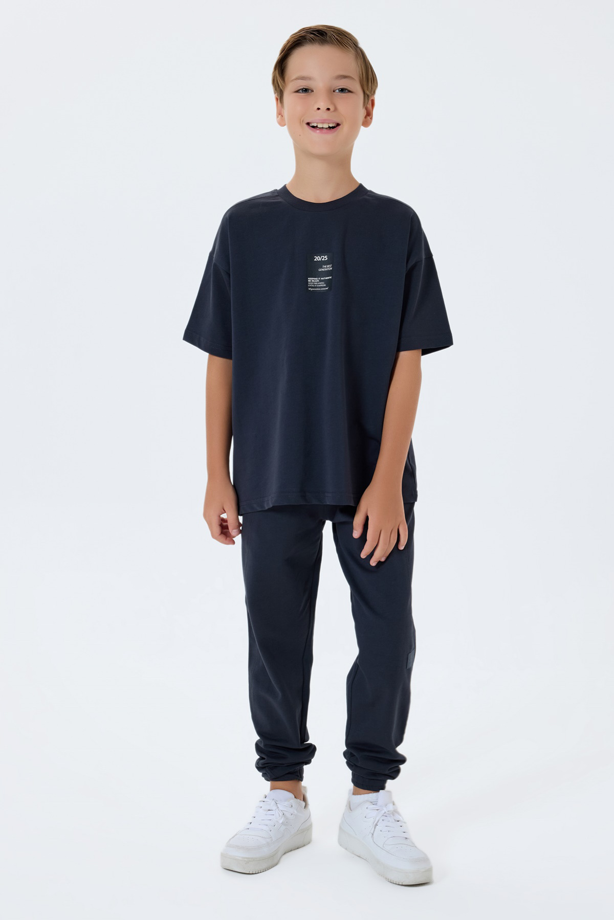 RP3768 طقم للاولاد قطن قطعتين لون رمادي غامق طقم بتصميم انيق قصة واسعة مكون من قطعتين بنطال مع بلوز نصف كم نسيجه القطني عالي الجودة يضمن راحة طفلك قطن 100% يغسل في درجة حرارة لا تتجاوز 30 درجة مئوية لا ينصح باستخدام النشافة