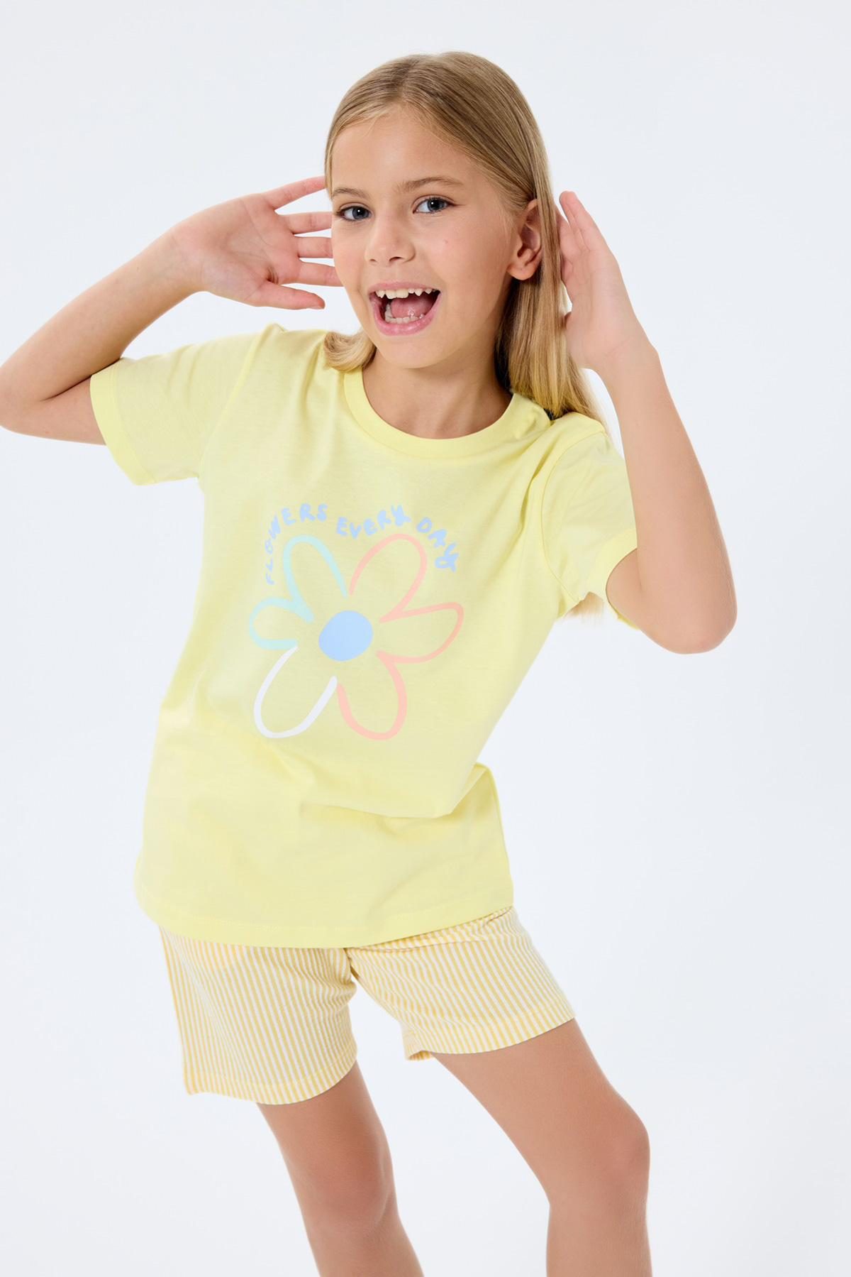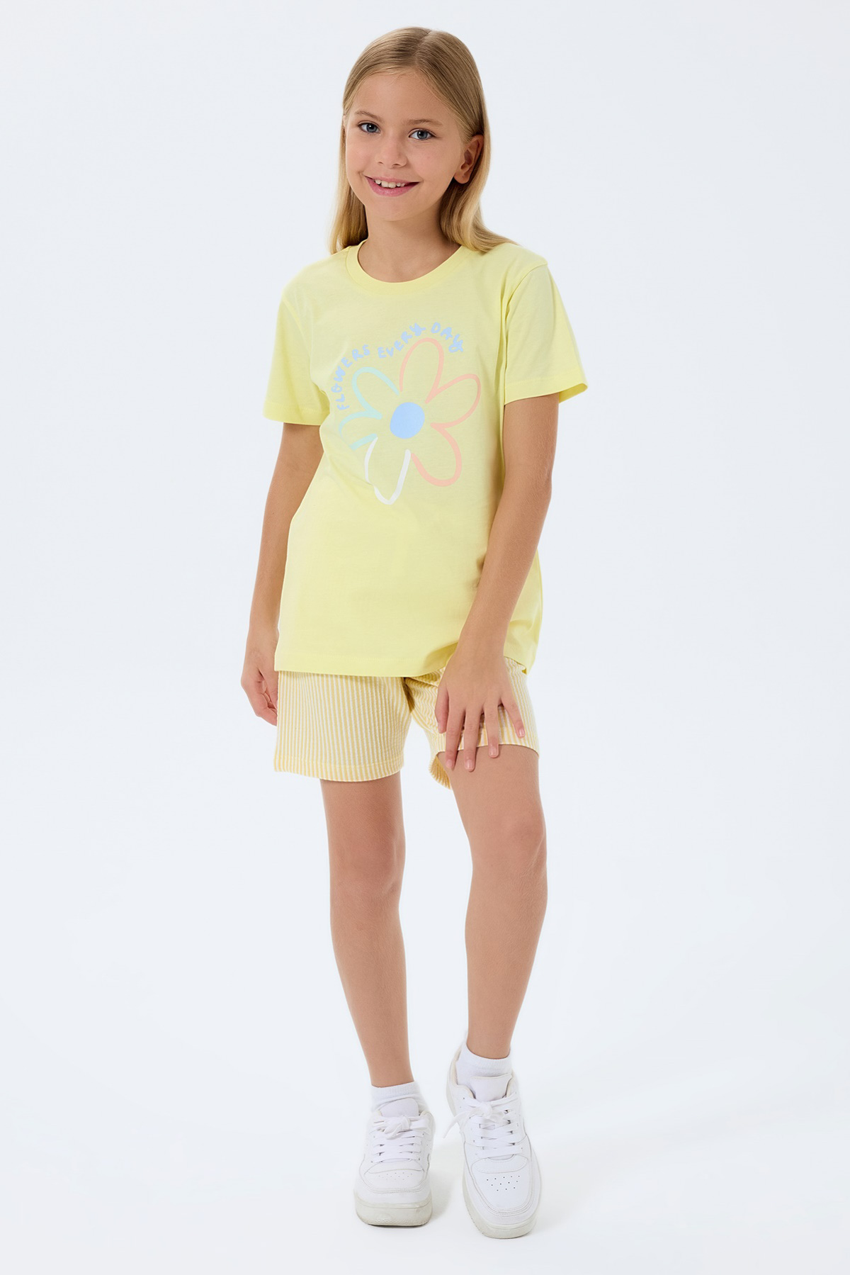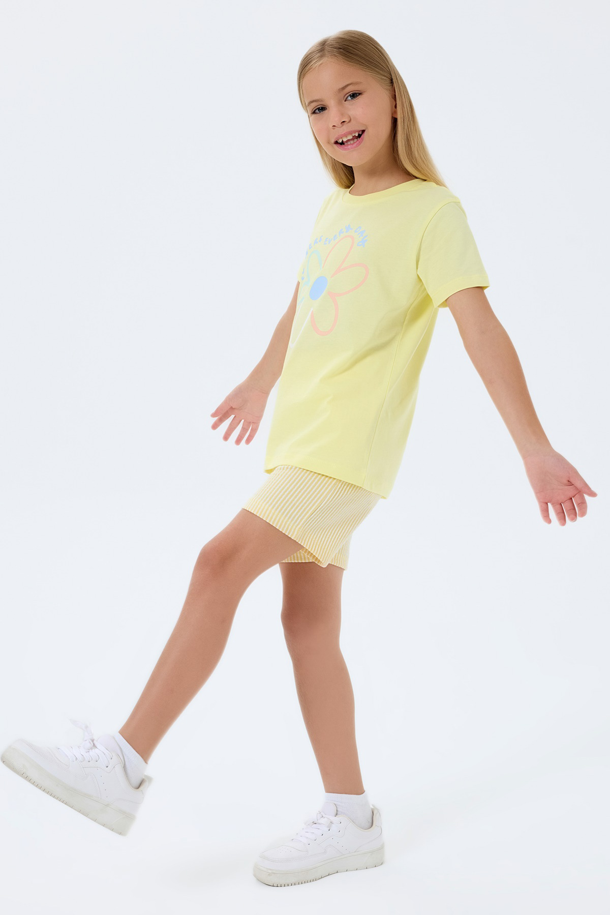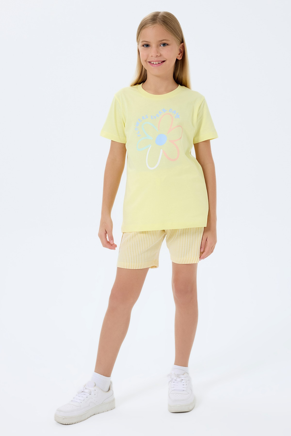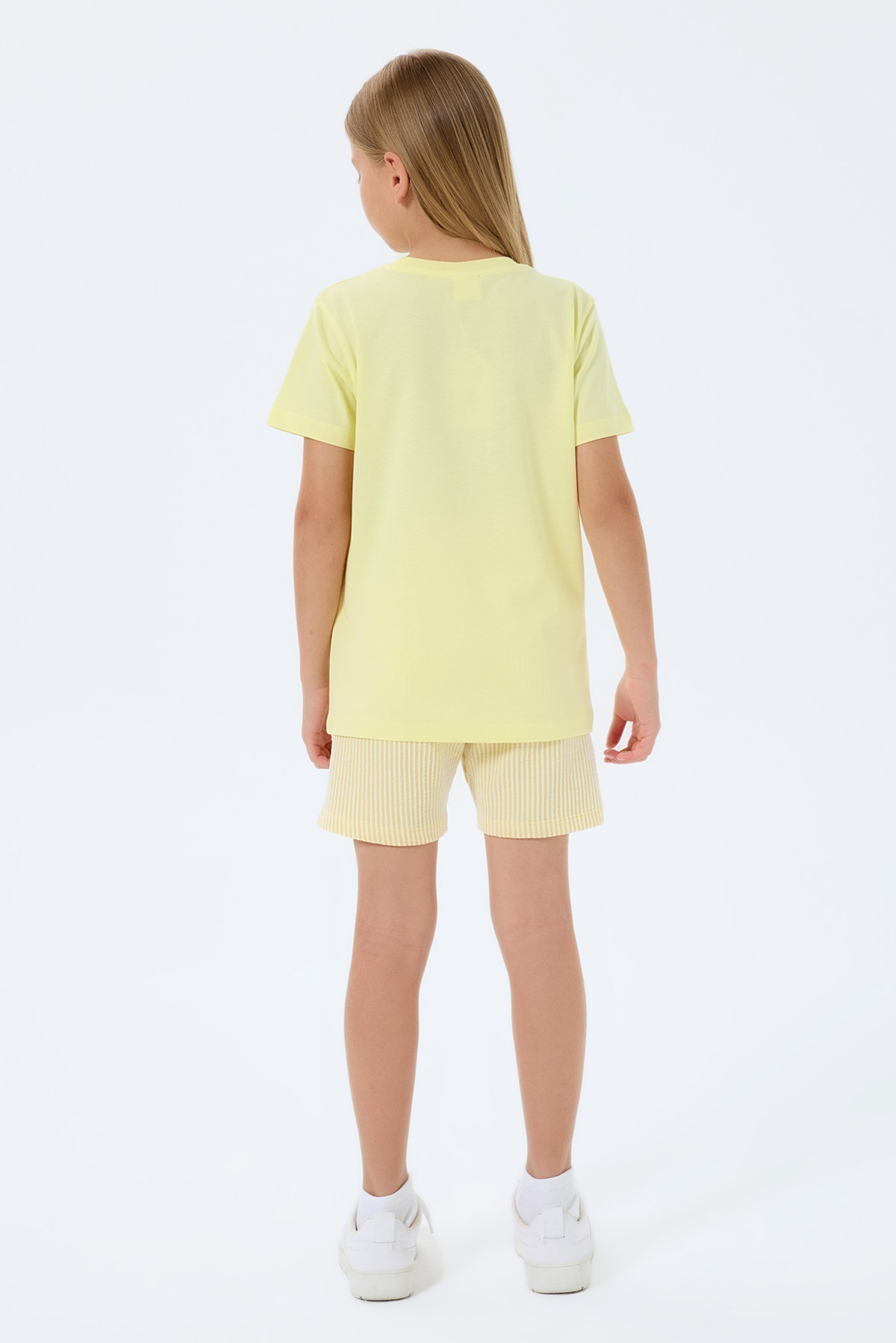 RP3795-2 طقم شورت قطن للفتيات قطعتين لون اصفر