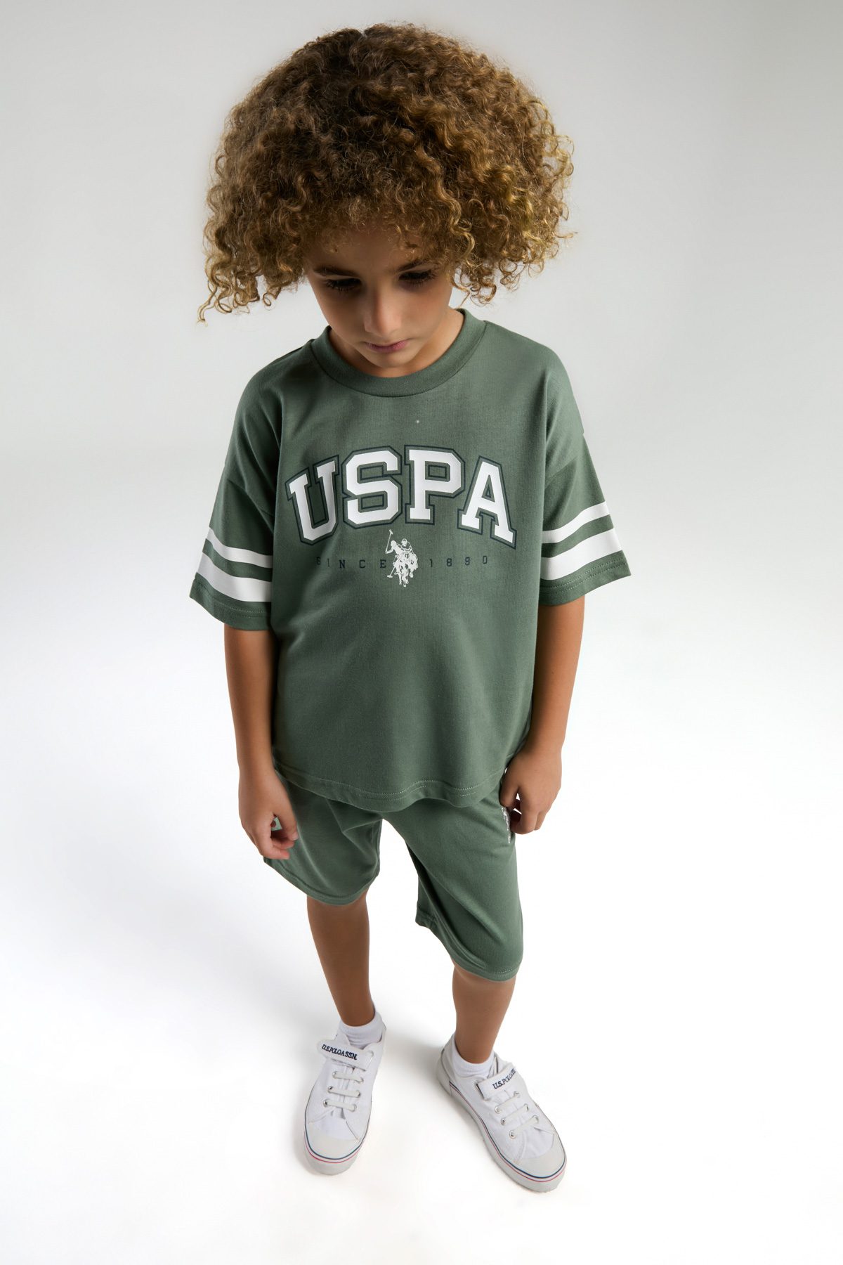 US1305 USPOLO طقم شورت للاطفال قطعتين قطن لون ابيض ماركة