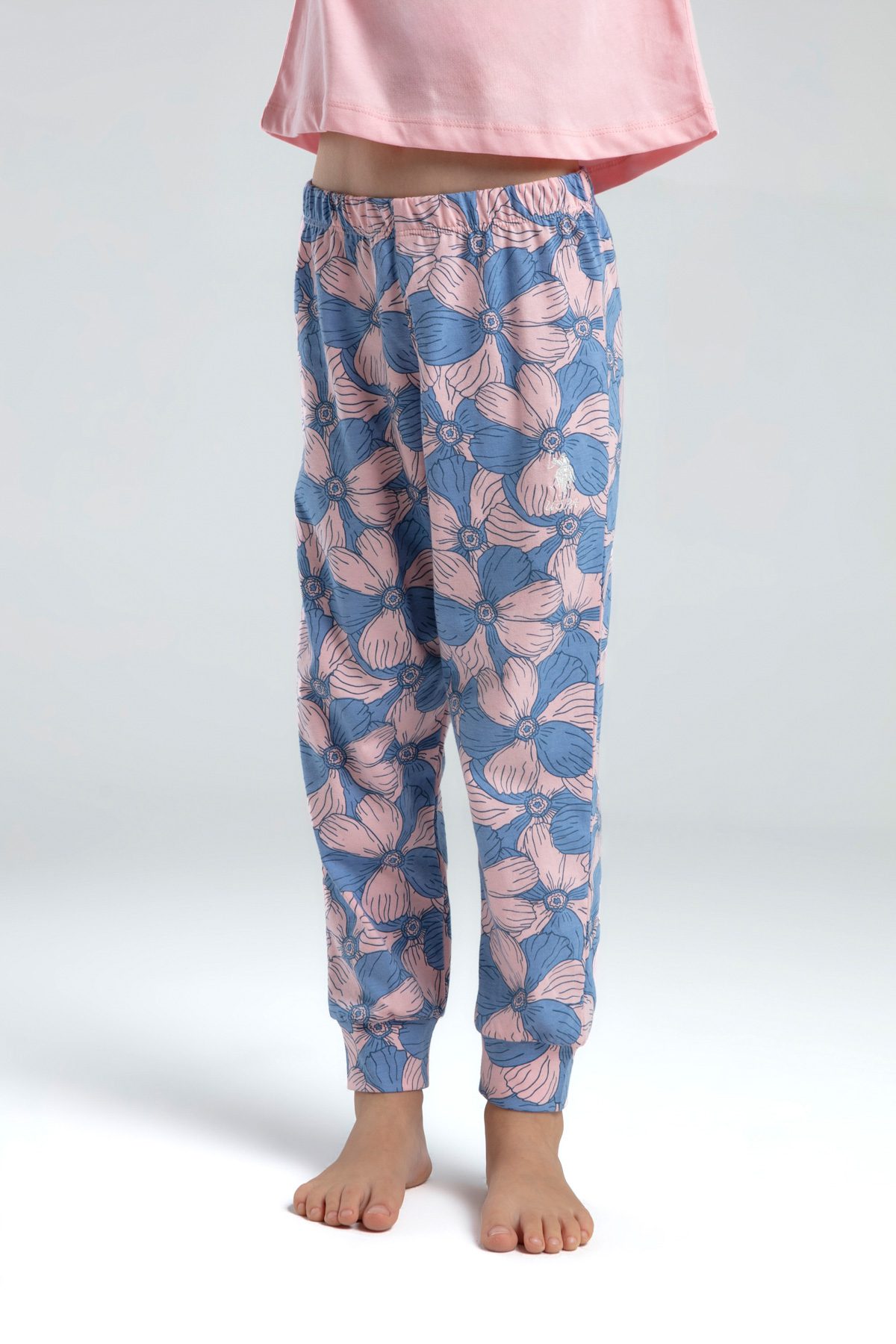 US2077 US POLO ASSN طقم بيجاما قطن قطعتين للفتيات لون زهري مع ازرق