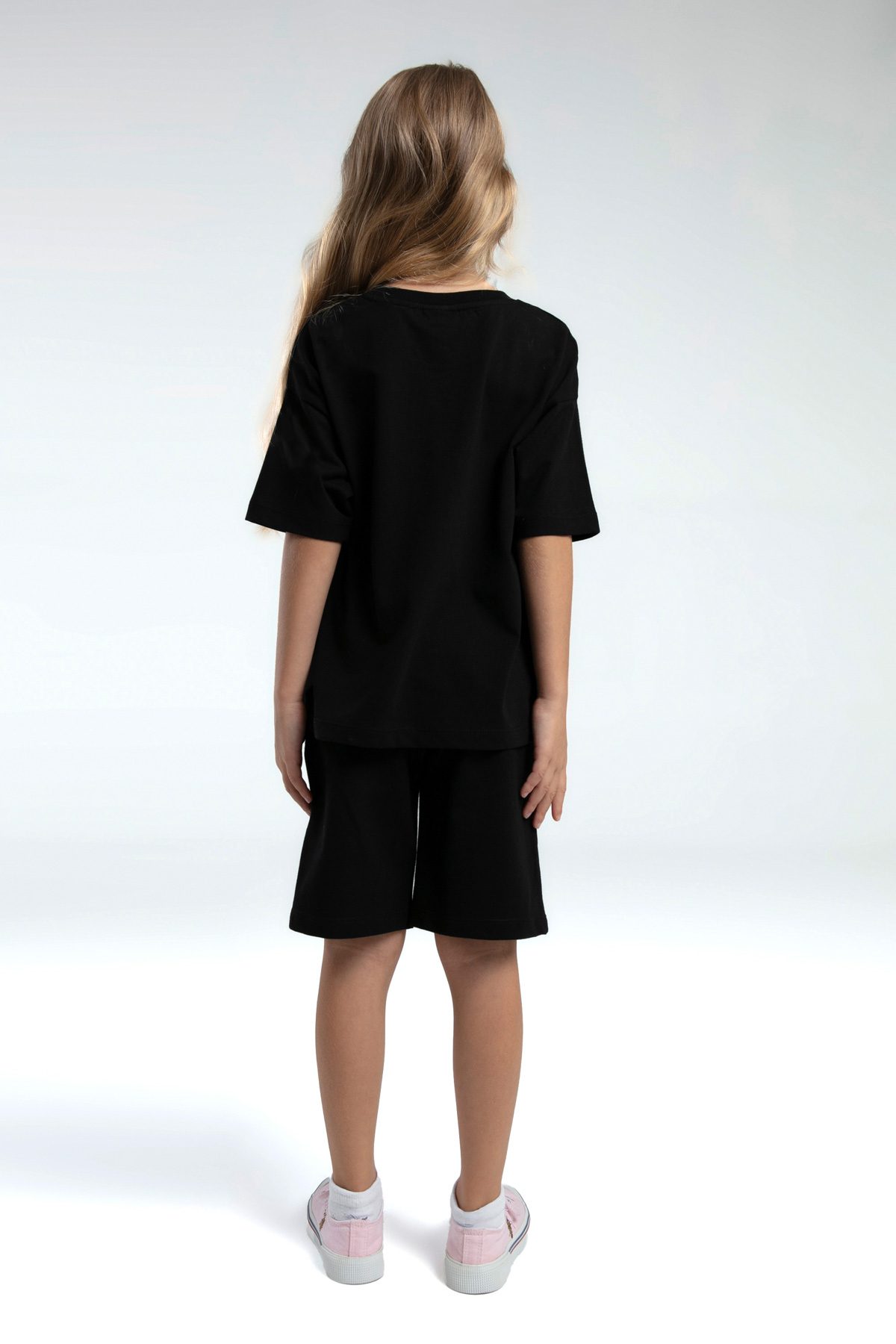 US2080 US POLO ASSN طقم شورت قطعتين للفتيات لون اسود قطن