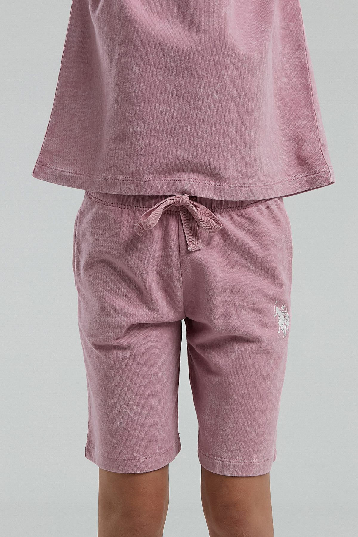 US2074 US POLO ASSN طقم للبنات قطن شورت قطعتين لون زهري