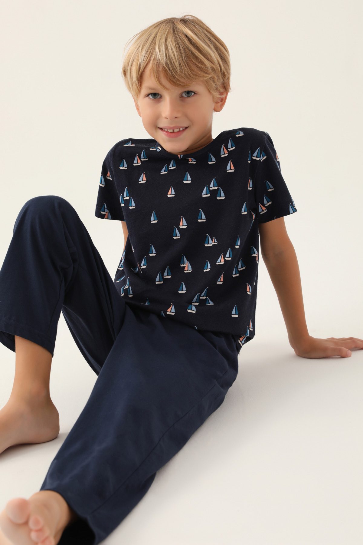 Ar2992 طقم بيجاما قطن للاولاد لون كحلي