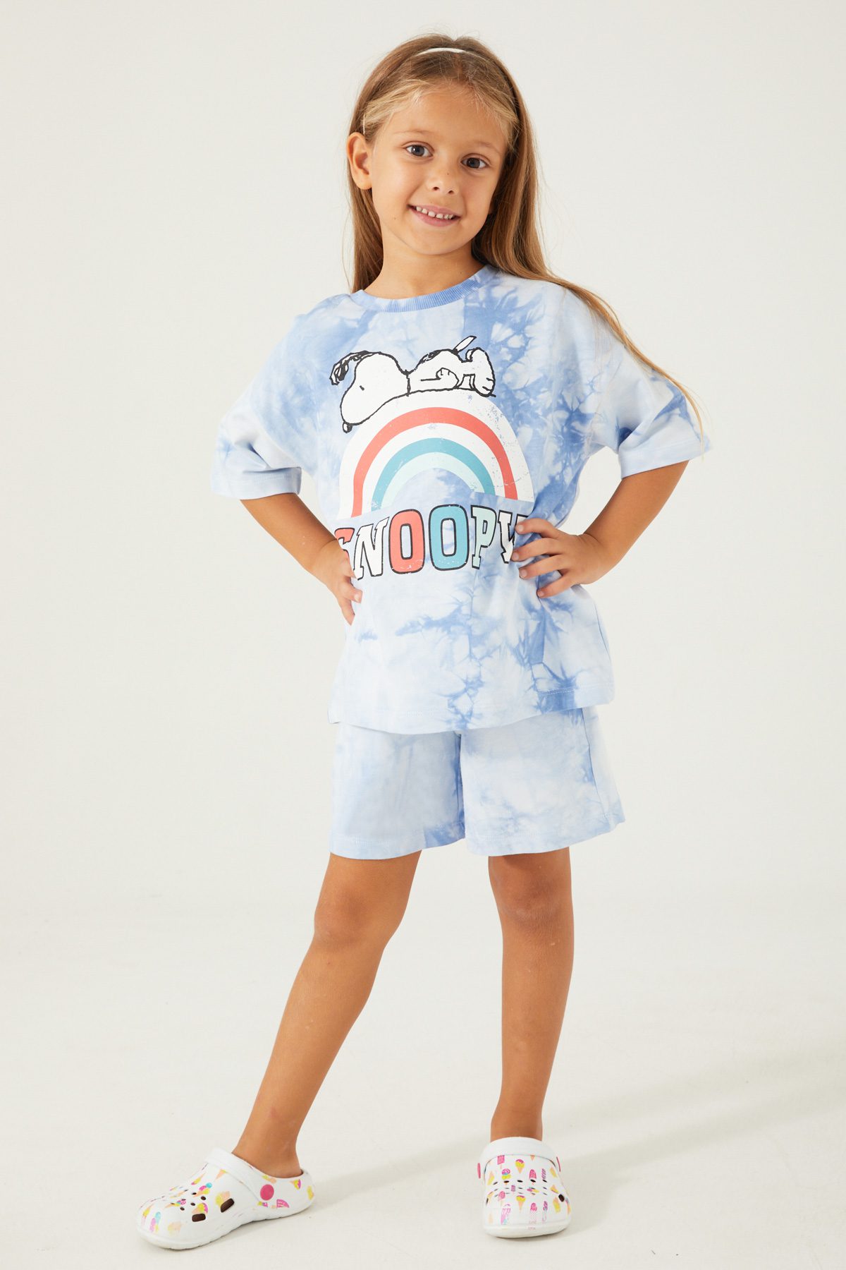 L1574 طقم شورت للفتيات قطن سنوبي لون ازرق سماوي