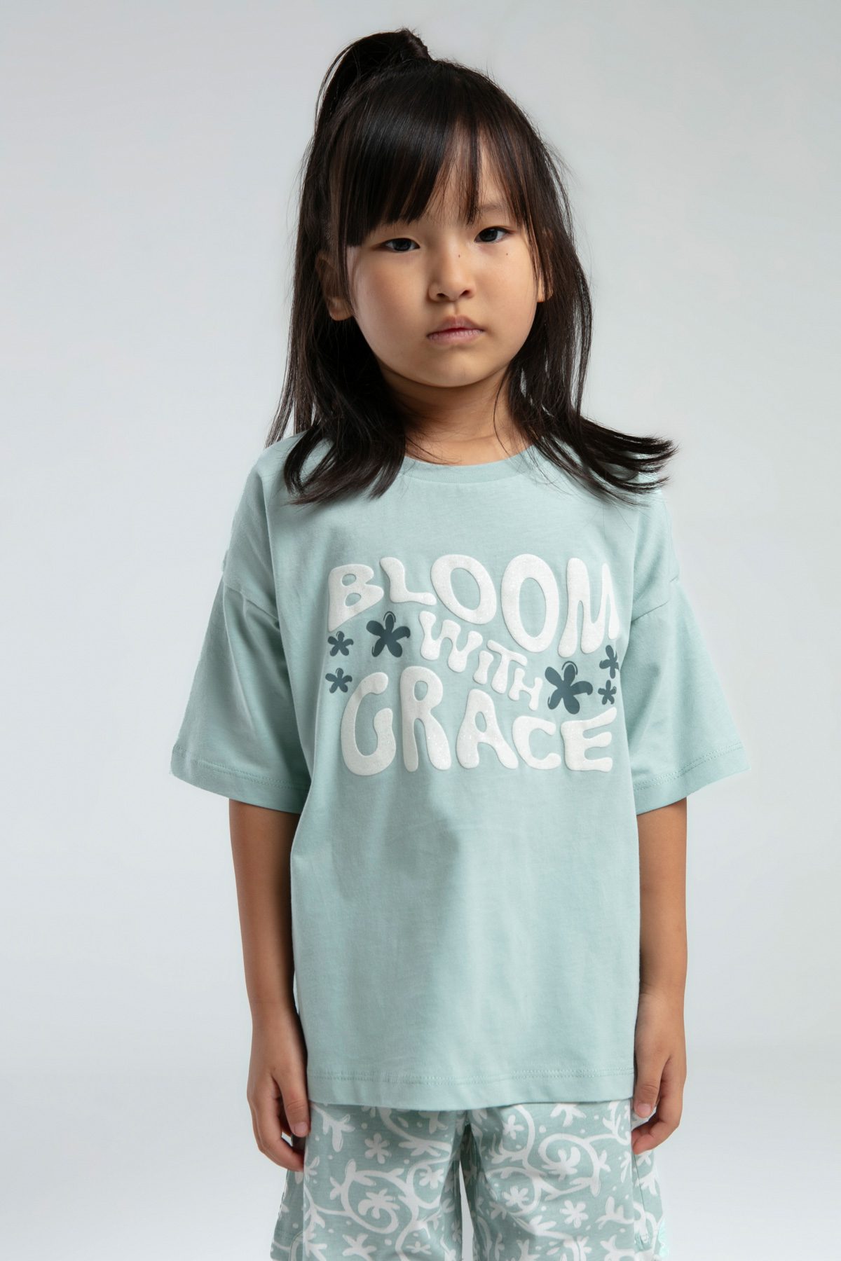 RP3590 طقم برمودا للفتيات قطن ثلاثة خيط لون فستقي