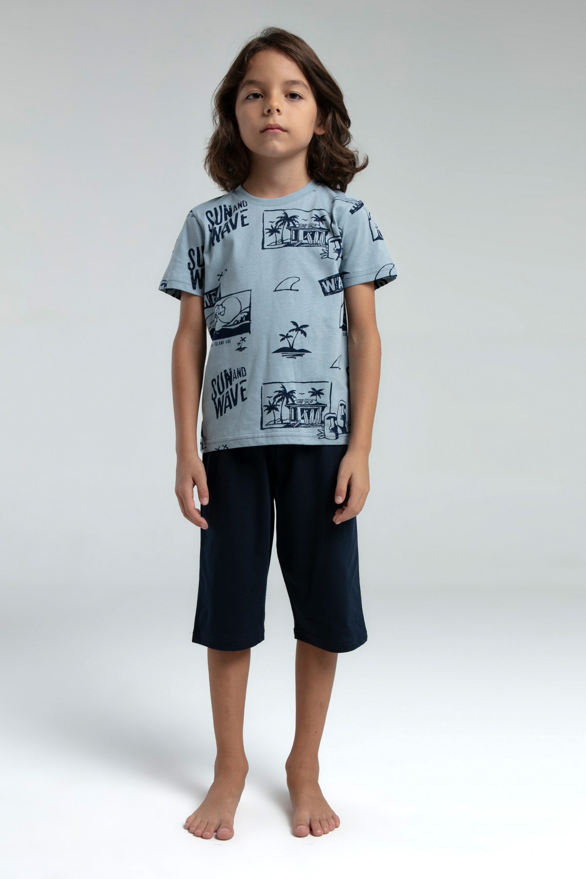 RP3560 طقم للاولاد قطعتين قطن برمودا