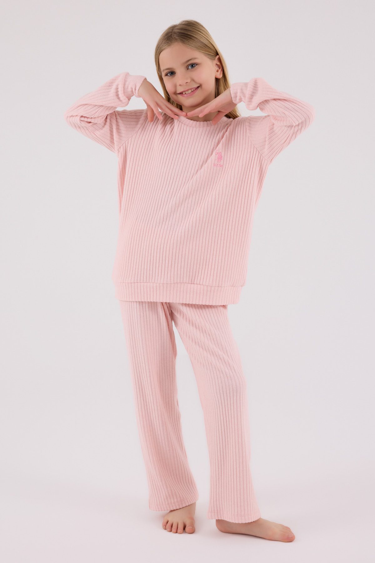 US2328US POLO ASSN طقم بيجاما دافئ للبنات لون زهري