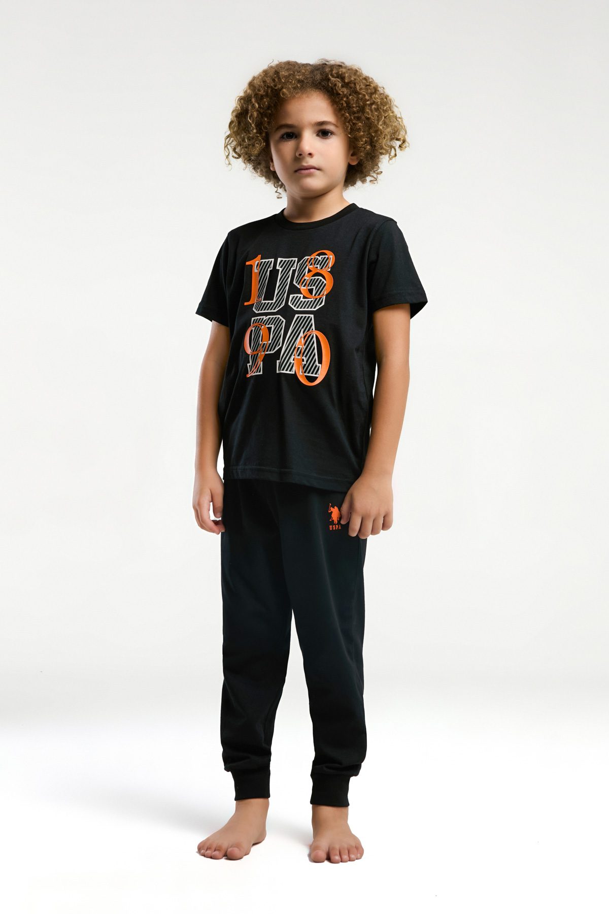 US2029 US POLO ASSN طقم بيجاما قطن قطعتين للاولاد بلوز لون اسود